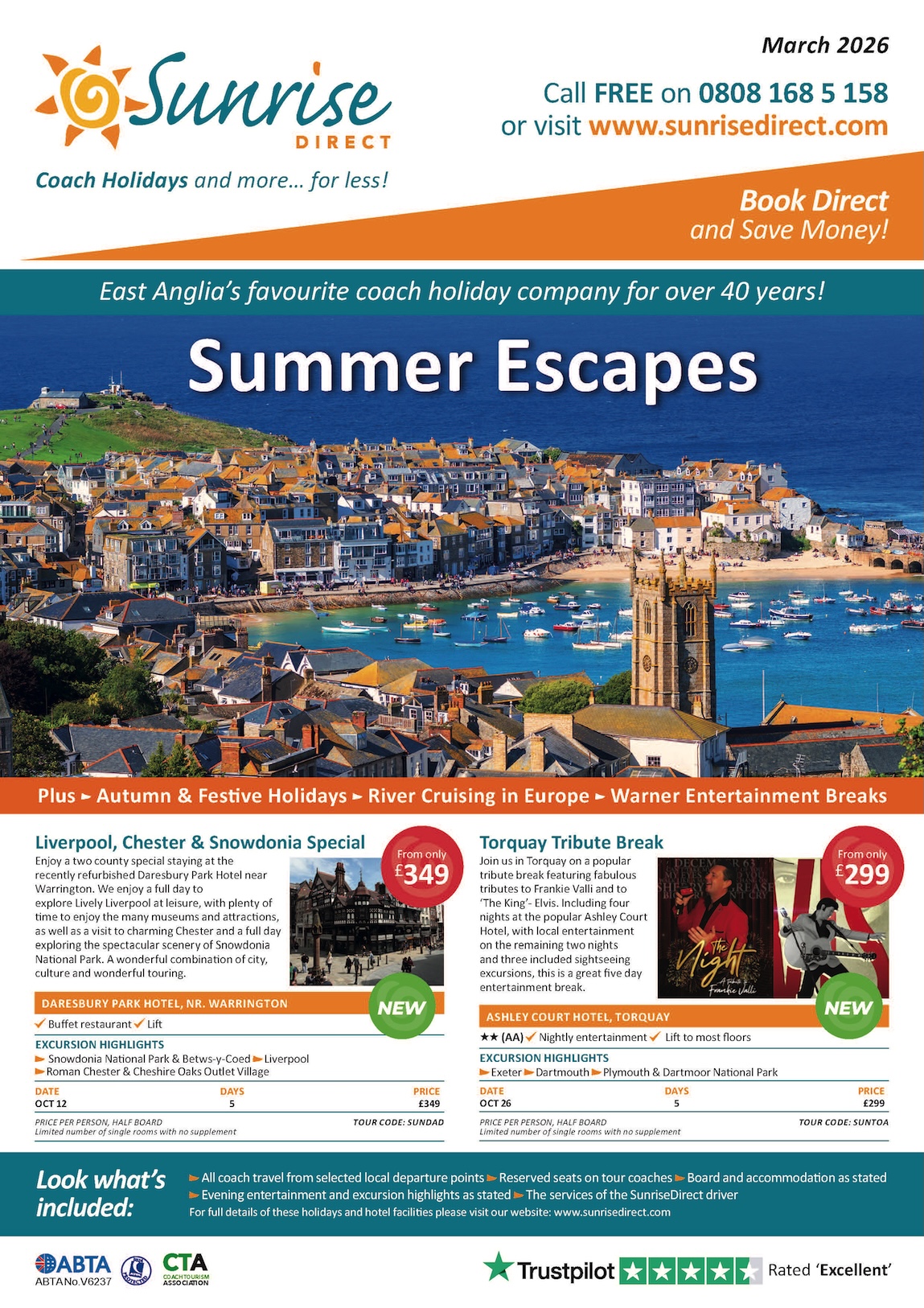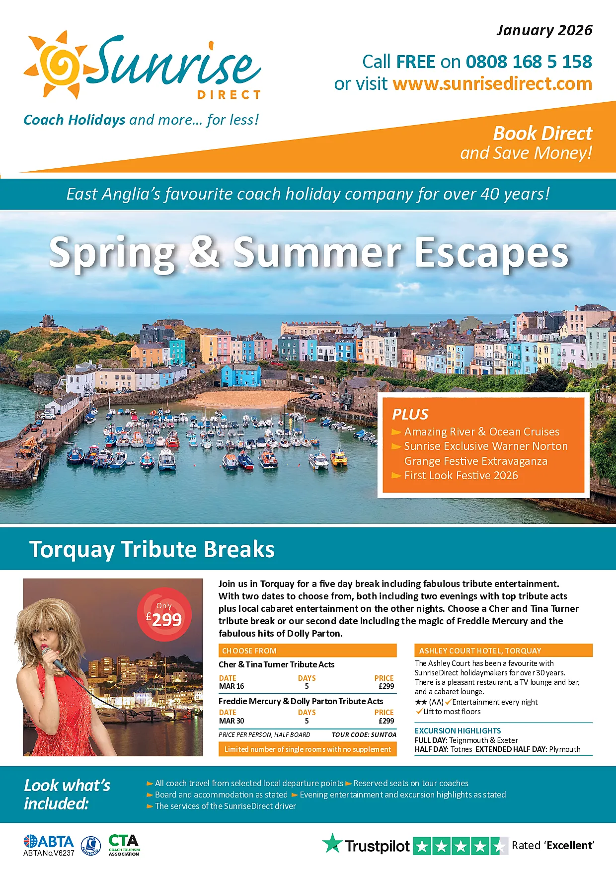 There is so much included all year round on a SunriseDirect holiday, you will always find a range of exciting excursions, seat reservations, as well as return travel from a convenient local pick up point across East Anglia, and we never charge on any route.